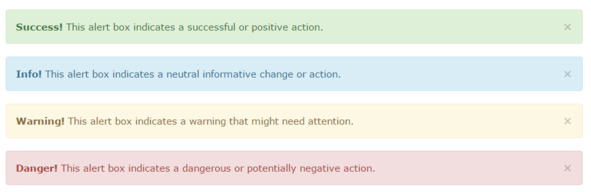 Bootstrap Alerts представляют собой не диалоговые окна с сообщениями, а выделенные цветом блоки текста на странице, которые, однако, имеют кнопку закрытия.