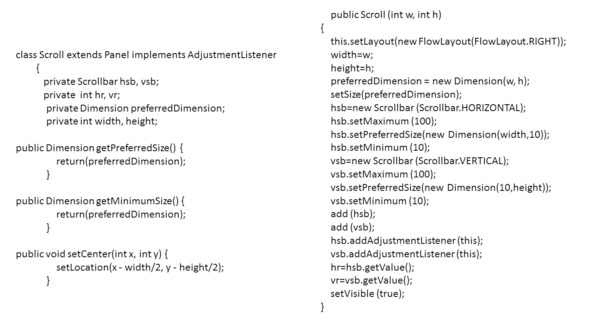 В конструкторе этого класса мы создаем горизонтальную и вертикальную полосы прокрутки.