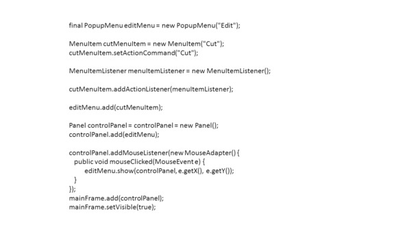 И в слушателе клика мыши панели, показываем всплывающее меню.