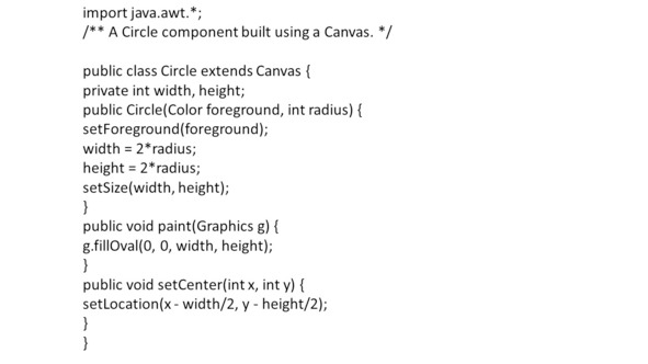 Также мы должны определить методы расчета размеров компонента и метод paint отрисовки компонента.