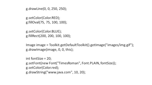 Во-вторых, класс Graphics предоставляет методы для рисования простых геометрических фигур, текста и изображений.