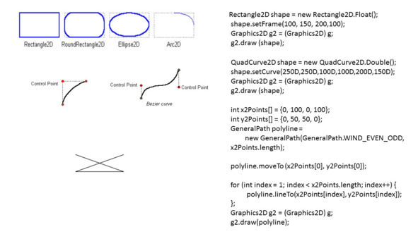 Java 2D API предоставляет класс Graphics2D, который расширяет класс Graphics, чтобы обеспечить доступ к расширенной графике и функциям рендеринга Java 2D API.