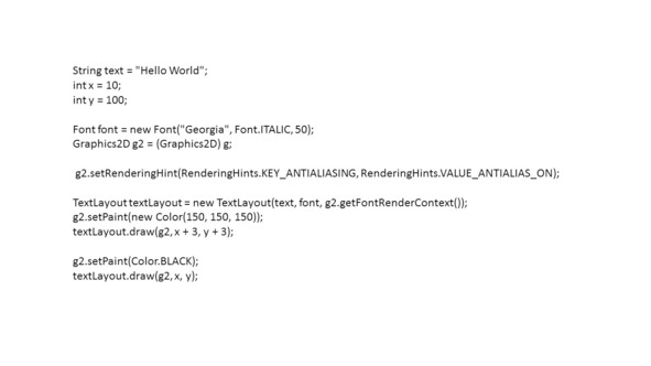 Если вы хотите контролировать качество отображения текста и его компоновку, вы можете использовать Java 2D API.