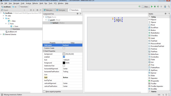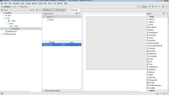 В результате будет создан Java класс и связанное с ним XML описание, которое открывается в редакторе IntelliJ IDEA GUI Designer.