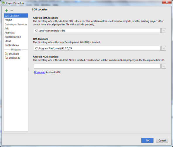 В меню File откроем Project Structure и увидим, что модуль аRSimple имеет зависимость от модуля аRBaseLib, представленного проектом ARBaseLibProj. Если этой зависимости нет, ее нужно добавить с помощью меню File/Project Structure.