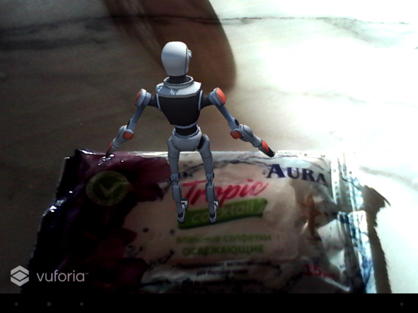 Например, сцена изображения камеры дополняется 3D Android логотипом в верхней части. Имейте в виду, что дополненная реальность не ограничивается только изображением, также возможны звук и другие сенсорные усовершенствования.