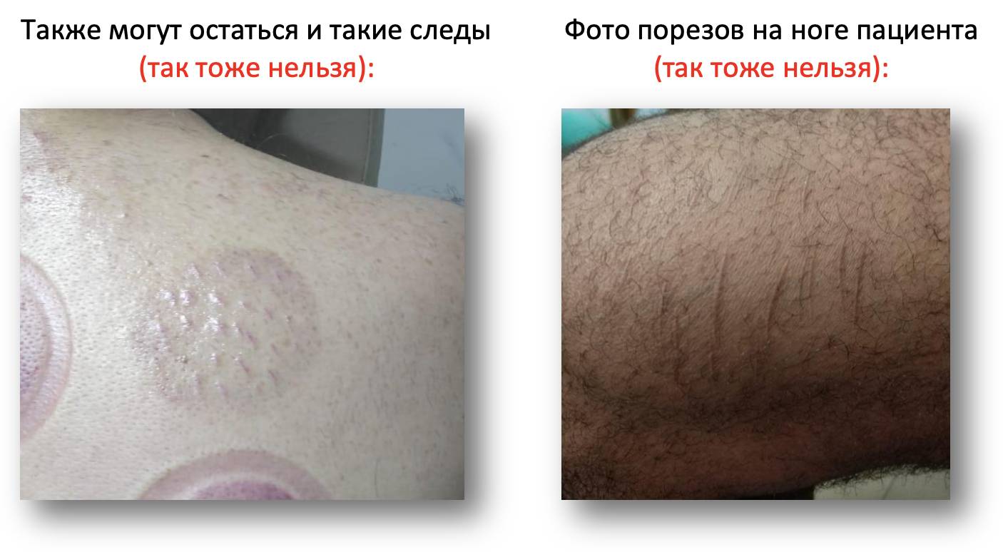 И это может стать причиной образования шрамов на этих участках тела. Ваш пациент будет сильно против и не доволен.