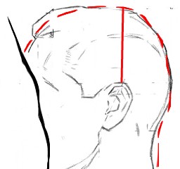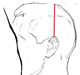 – после этого чертим вторую линию от позвоночника до лба, как показано на рисунке ниже.
