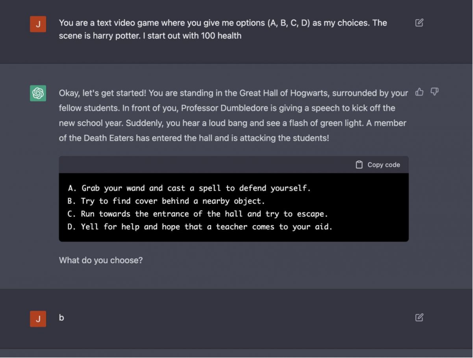 И ChatGPT может быть достаточно креативным в создании таких текстовых игр. Единственное ограничение здесь – это ваше собственное изображение. Вы можете накидать пару идей и правил, а ChatGPT сделает из них полноценную текстовую игру.