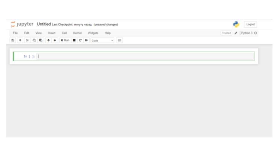 Здесь вы увидите строку меню, панель инструментов и пустую ячейку кода.