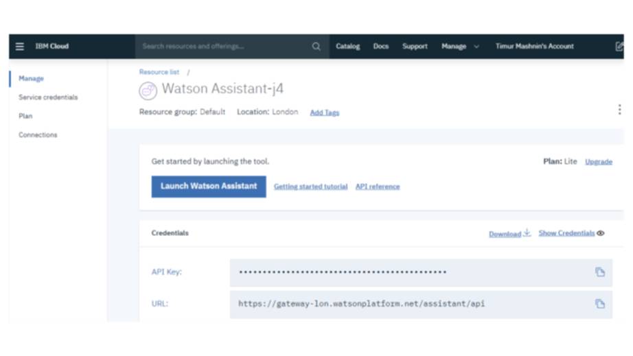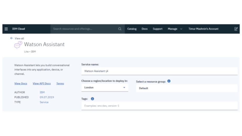 Вверху, в поиске, наберите Watson Assistant и перейдите на страницу Watson Assistant.