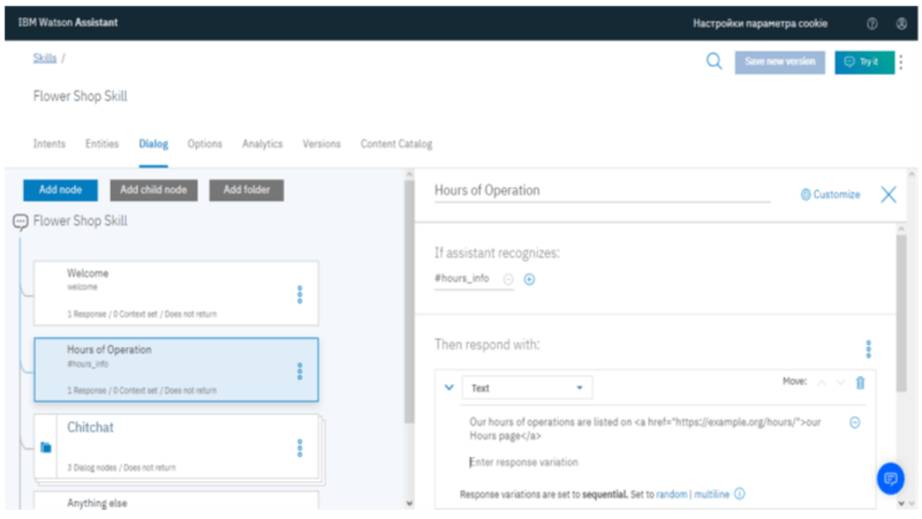 Теперь, давайте создадим диалог для нашего чат-бота.