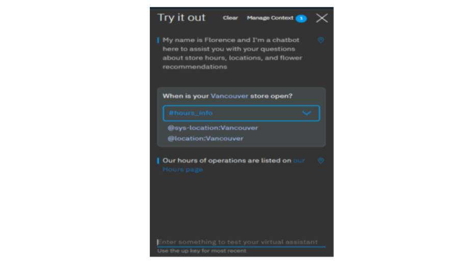 Теперь, помощник Florence Chatbot связан с навыком цветочного магазина.