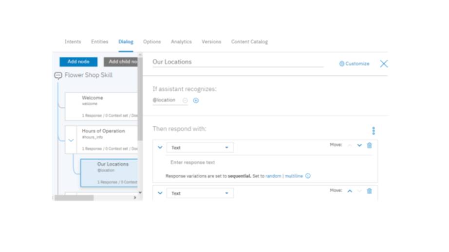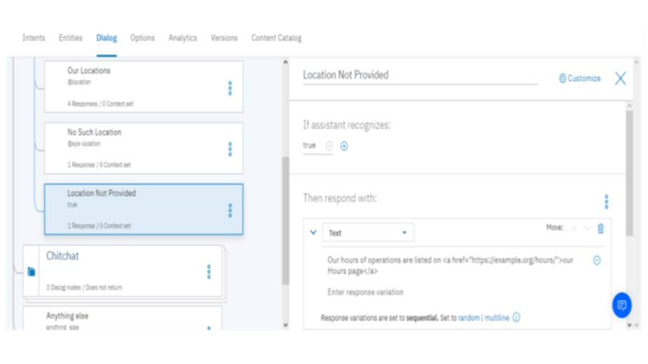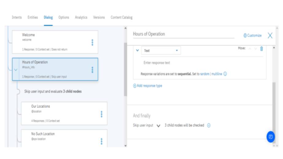 При организации вашего диалога всегда размещайте узлы с определенными условиями вверху и узлы с более общими условиями внизу.