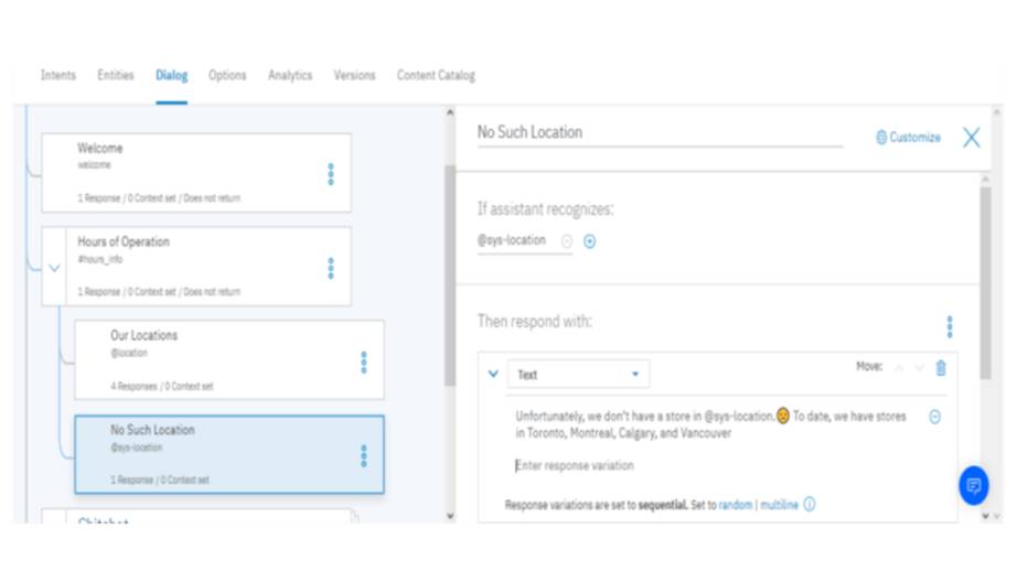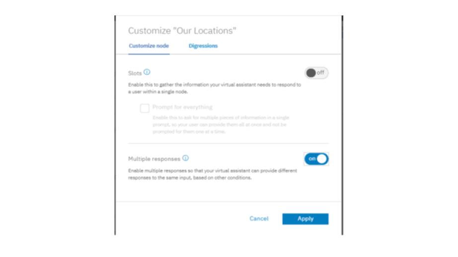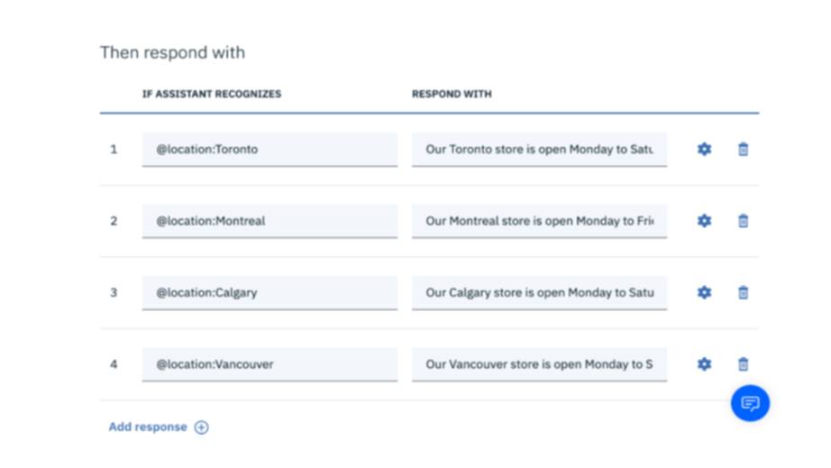 И нам нужен способ предложить разные ответы для разных городов, поэтому мы включим опцию Multiple conditioned responses.