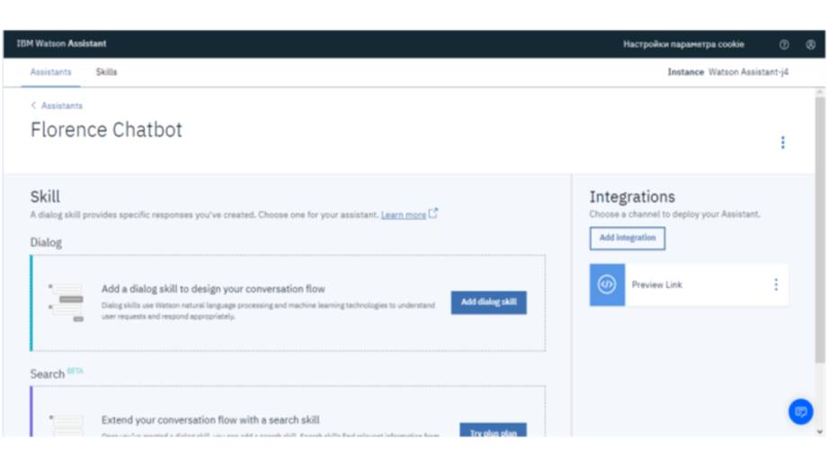 Здесь вы добавите навык диалога к помощнику, которого вы только что создали.