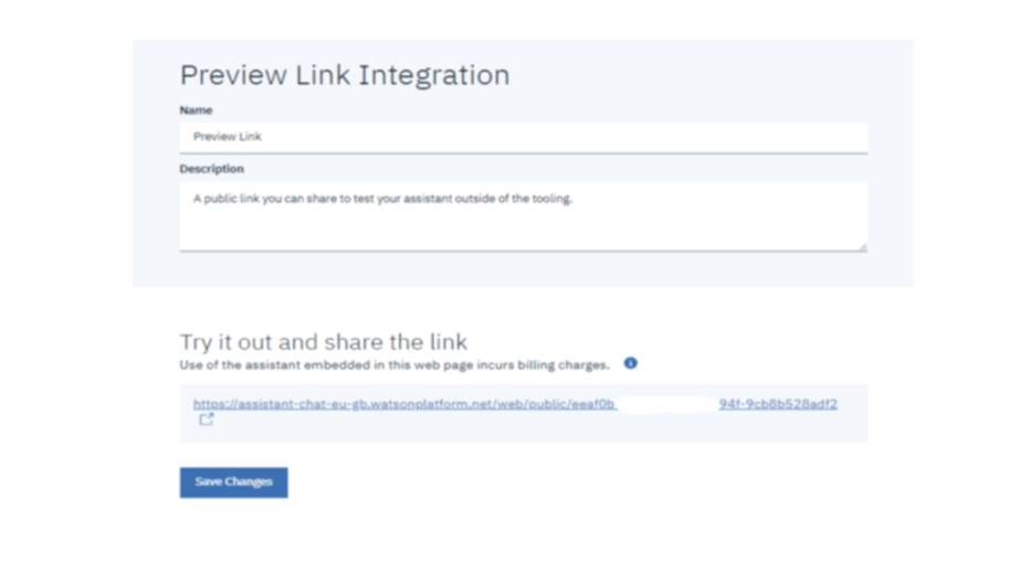 И при создании помощника вам предоставляется возможность включить ссылку предварительного просмотра, которая дает вам страницу, на которой можно опробовать чат-бот.