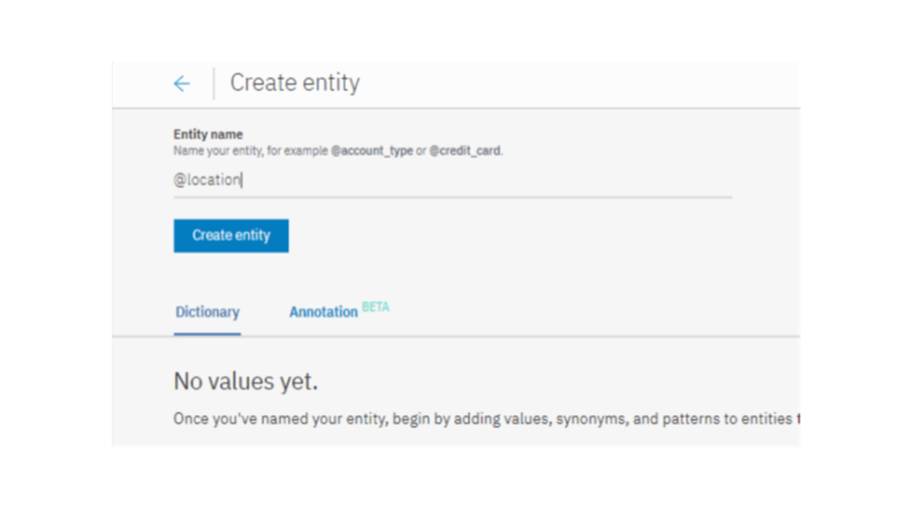 Теперь, давайте создадим сущности @location для нашего чатбота.