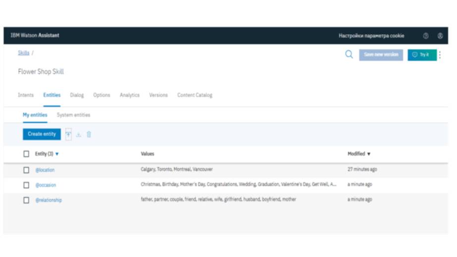 И в любой момент вы можете нажать на значение сущности, чтобы изменить его значение или синоним.