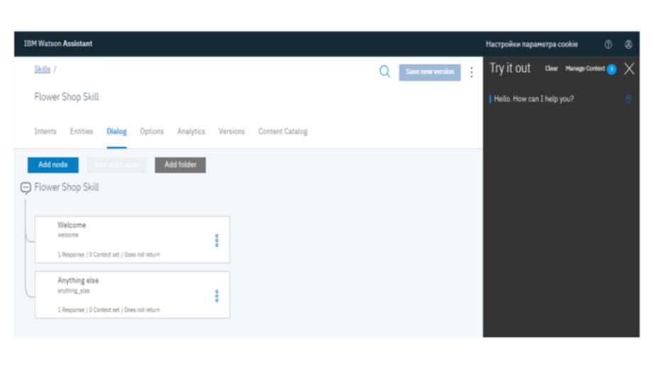 Welcome и Anything else – это два узла по умолчанию, созданные для вас при первом создании диалога для вашего чат-бота.