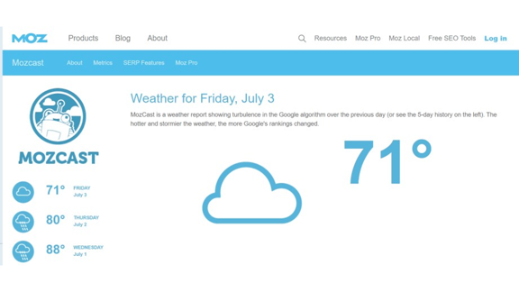 Всякий раз, когда вы замечаете большие изменения в вашем рейтинге или трафике, хорошей идеей будет проверить MozCast.
