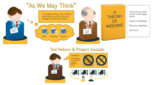 В этой статье Буш подтолкнул ведущих ученых того времени к созданию практически безграничной, быстрой, надежной, и расширяемой системы хранения и поиска.