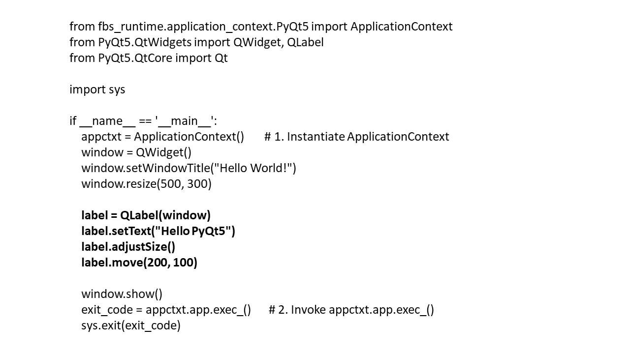 Объект ApplicationContext также создает и содержит ссылку на глобальный объект QApplication, доступный в ApplicationContext.app, так как каждое приложение Qt должно иметь один и только один объект QApplication для хранения цикла событий и основных настроек.