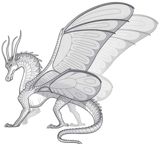 Две пары крыльев, изящных и переливчатых, как у бабочки. Появляются у бескрылых драконят в шестилетнем возрасте вместе со способностью выделять шёлк. Чешуя любого цвета, за исключением чёрного.