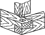 Самым простым и надежным является соединение «в торцевой шпунт», когда шип на торце одного бревна входит в паз боковой стороны на конце другого бревна (рис. 18).
