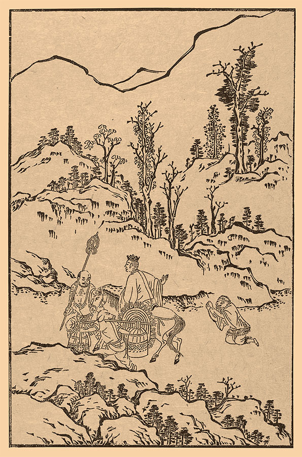 Танский монах, досадуя в душе, взобрался на коня, и путники двинулись дальше.