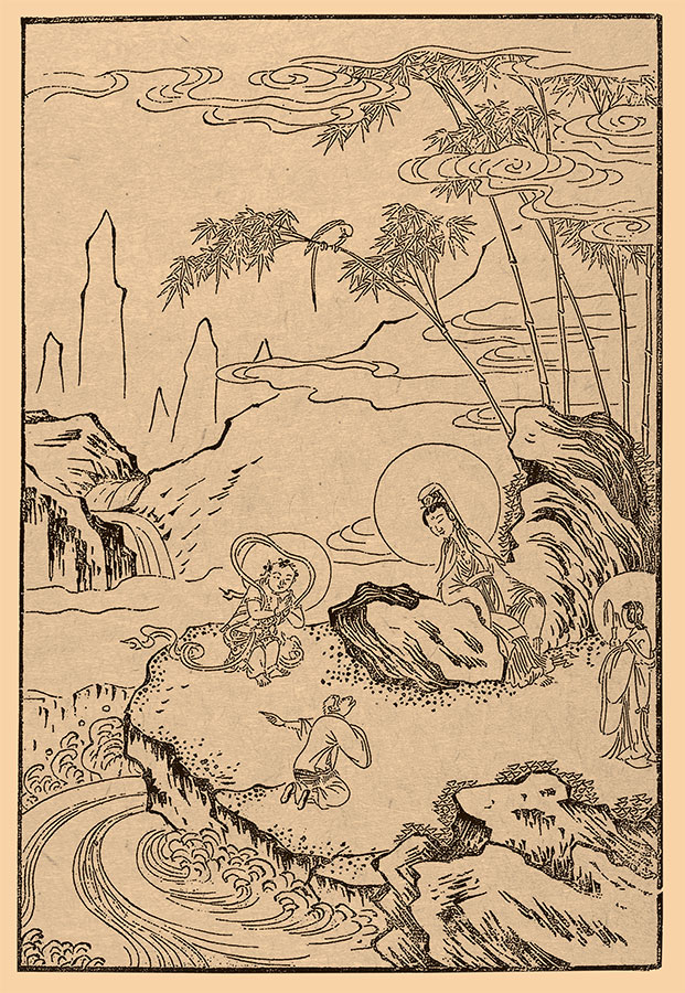 – Прежде всего, как только прибудешь туда, обрати внимание на то, как он тебя встретит. Если он тут же согласится возвратить наши узлы, поблагодари его, возьми их и уходи. Если же он не пойдет на уступки, ни в коем случае не затевай с ним ссоры, а сейчас же отправляйся к Южному морю, где живет бодисатва Гуаньинь, и пожалуйся ей. Расскажи все, как было, и попроси, чтобы она помогла нам вернуть нашу поклажу.