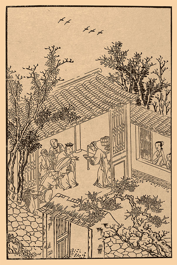 Смотрительница почтовой станции оправила свои одежды и головной убор, вошла в город и остановилась у высокого здания, носившего название «Терем пяти фениксов». Подойдя к старшему из евнухов, охранявших ворота, она сказала ему: