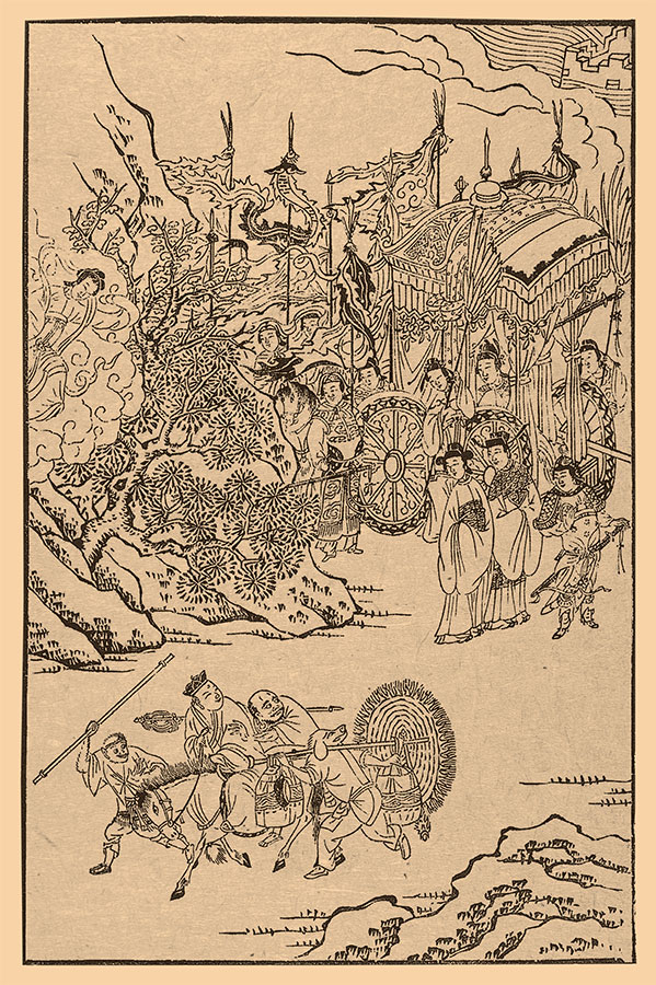 Между тем Ша-сэн и Сунь У-кун вывели Танского монаха из толпы и помогли ему сесть на коня. Вдруг на обочине дороги мелькнула женщина. Она бросилась к Танскому монаху с возгласами: