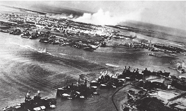 Трофейная японская фотография, снятая во время атаки Перл-Харбора, 7 декабря 1941 года