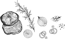 Сверху на жарящееся мясо бросают веточки розмарина, любимой тосканской травки, на его ветки и креветки для жарки можно нанизать. Только с лавровым листом розмарин не сочетается, тут уж или-или.
