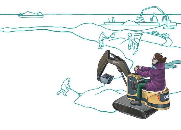 Она помогла мне взобраться на экскаватор и разобраться с управлением. Там сбоку кнопка была, которую нужно нажать, чтобы машина заработала. Ну и рычаги. Если дёрнуть самый левый, то экскаватор разворачивал корпус направо или налево. Два других отвечали за ковш – один его двигал, другой наклонял. Сначала у меня не выходило даже зачерпнуть этот вулканический песок. Потом мама посоветовала мне передвинуть ковш левее, и вот я уже набрала первую горсть. Она тут же просыпалась, но я всё равно гордилась собой. Получается же!