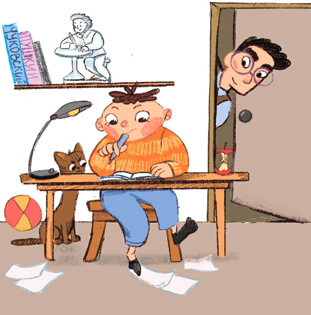 Но папа стал убеждать его, что когда он вырастет, он прочтет свои записи, вспомнит свое детство, друзей и все события, которые с ним происходили. И ему будет очень приятно и весело.