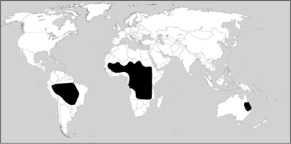 Рис. 5. Дизъюнктивный ареал двоякодышащих рыб
