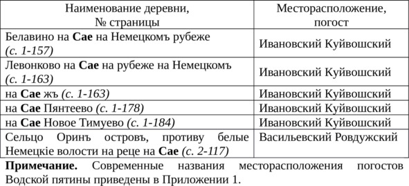 Таблица В5Гидроним Сая по «Переписной книге Водской пятины 1500 года»