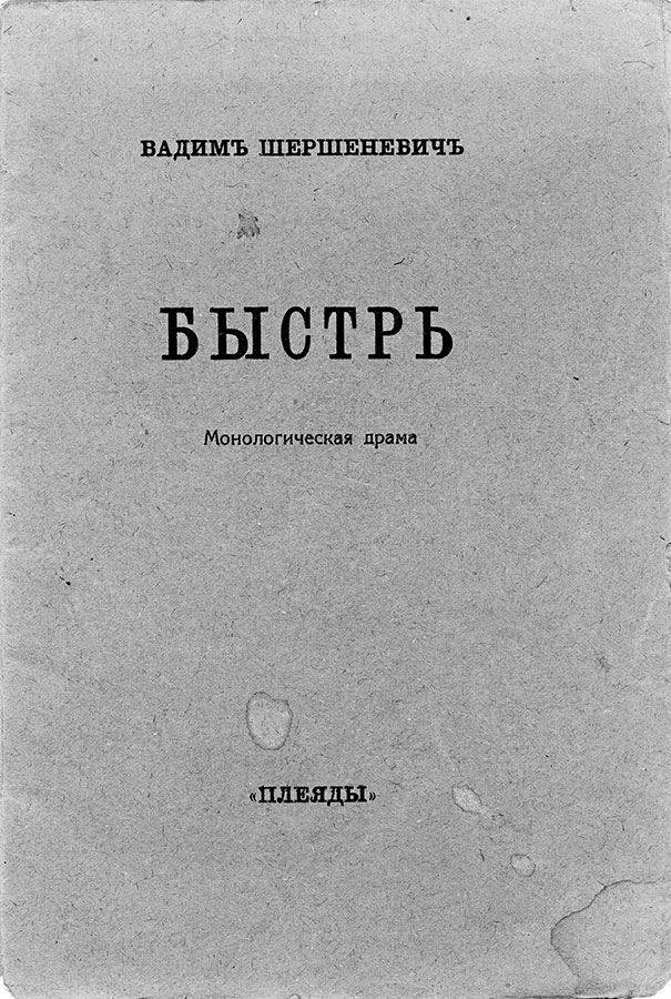 Идея напечатать в отдельном сборнике четыре ранние драмы Вадима Габриэлевича Шершеневича созрела в процессе работы над однотомником его произведений в стихах и прозе «Великолепный очевидец» (М., 2018). В него удалось включить основной корпус стихотворений (в том числе не публиковавшихся) и все поэмы. В прозаической части книги были полностью напечатаны мемуары, охватившие период 1910–1925 гг., и другие избранные произведения сюжетной, публицистической, экспериментальной и военной прозы. Вместе с тем, в силу ограничений, накладываемых издательской рубрикой «Поэты в стихах и прозе», за рамками публикуемых материалов оказались драмы Шершеневича, прежде всего ранние, написанные в самый активный период его поэтической деятельности: монологическая драма «Быстрь», трагедия великолепного отчаяния «Вечный жид», американская мелодрама-сатира «Дама в черной перчатке» (все пьесы написаны в стихотворной форме), арлекинада «Одна сплошная нелепость» (написана прозой со стихотворными вставками).