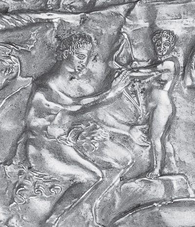 Илл. 12. Деталь изображения на золотой пластине горита. Курган Чертомлык