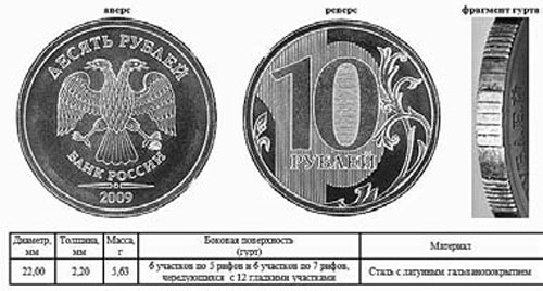 Рис. 1.1.14. Внешний вид и характеристики новой монеты номиналом 10 руб.