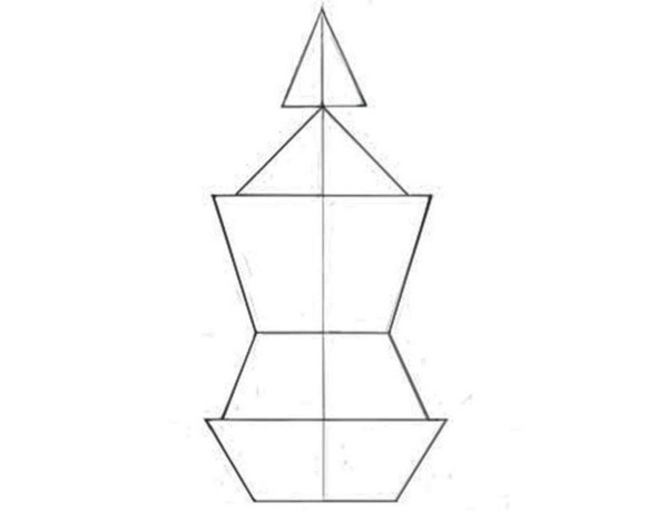 Задание 2: выполните на вертикальной плоскости абрис сложного предмета, состоящего из треугольников и трапеций разной величины, расположенных на одной оси симметрии.