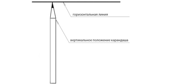 Чтобы нарисовать вертикальную линию, карандаш надо держать строго горизонтально так, чтобы грифель скользил по бумаге.