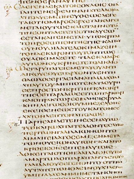 1. Фрагмент Евангелия от Луки (12:54–13:4). «Александрийский кодекс» – один из древнейших манускриптов с текстом Библии, написанный на греческом языке и датируемый V веком нашей эры. Британская библиотека, Лондон