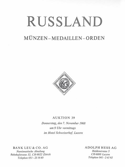Гурте целой серии редких платиновых монет, также выставленных на аукционе 1968 года». Стр. 29