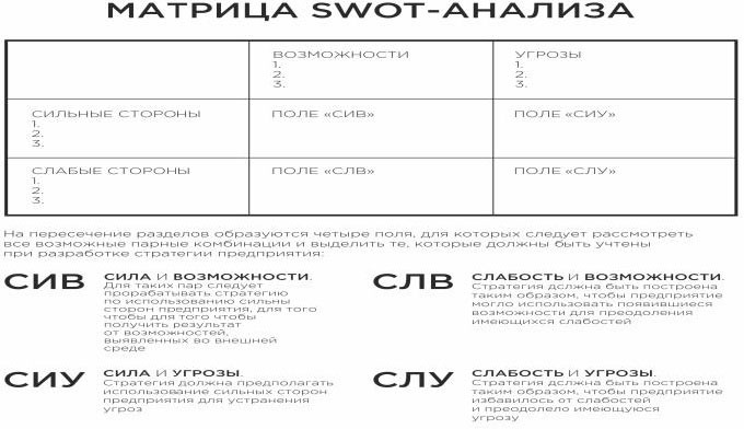 SWOT-анализ выступает способом структурирования информации и позволяет сделать предположения относительно потенциальных позитивных и негативных событий для качественной разработки маркетинговой стратегии и маркетингового плана.