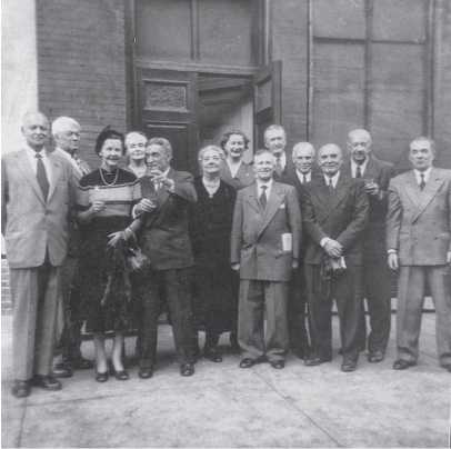 Члены объединения Лейб-Гвардии Казачьего Его Величества полка с гостями в день празднования полкового праздника в Нью-Йорке 04.10.1953 года. Справа налево: Чекунов С. А., князь Трубецкой Н. П., Самсонов Е. А., Полковников С. П., князь Трубецкой В. П., Какурин И. И., Ефремов В. Н. (под рук с женщиной взмахнул рукой); слева два гостя (не лейб-казаки). Архив ЛГКЕВП