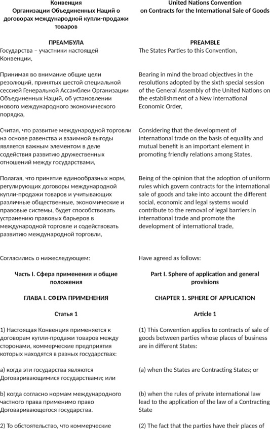 Венская Конвенция ООН о договорах международной купли-продажи товаров 1980 года