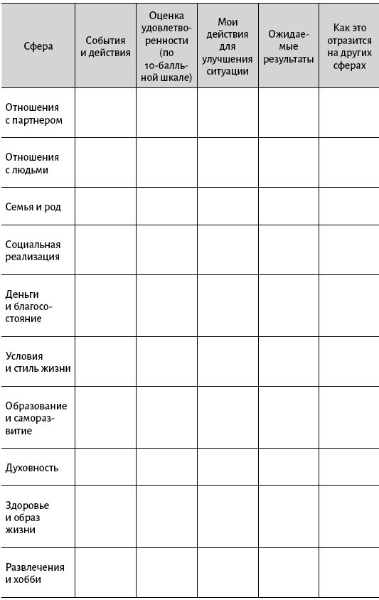 Сделайте это для каждой сферы, лучше всего письменно (см. таблицу). Это даст вам очень много новой и полезной информации о себе и своей жизни.